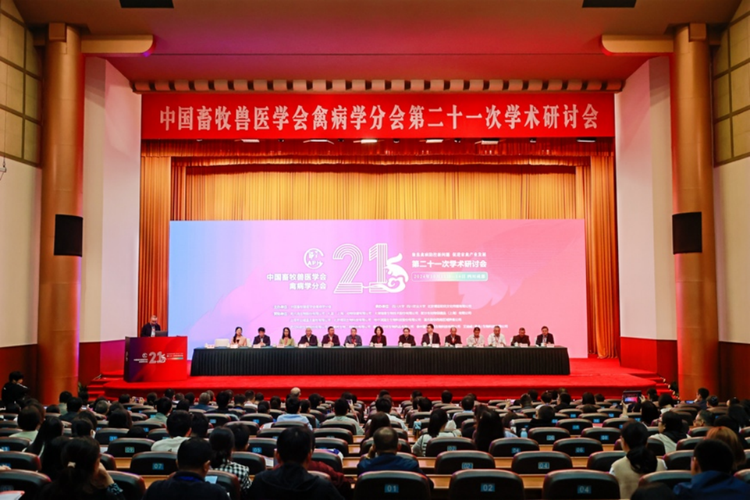 2024年10月12日,中国畜牧兽医学会禽病学分会第二十一次学术研讨会在成都盛大启幕。大会以“聚焦禽病防控新问题、促进家禽产业发展”为核心议题,汇聚了来自全国各地的500余名畜牧兽医领域的顶尖专家学者、企业精英和技术骨干,共同探讨禽病防控领域的最新研究成果和未来发展趋势。会议由中国畜牧兽医学会禽病学分会主办,四川大学、四川农业大学、北京博亚和讯文化传媒有限公司承办。